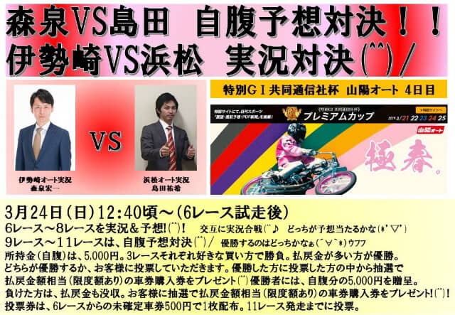 4日目の6レースから予想会、さらには交互にレース実況を披露。