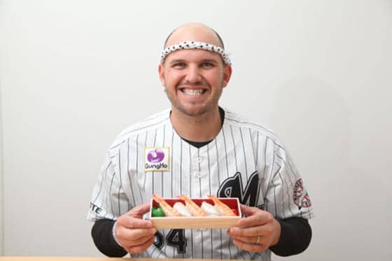 レアードは球団を通じ「幕張スシ、TODAY オープン! スシボーイ! スシ大好き! 幕張スシ美味しいヨ」とコメントを発表した。(Full-Count編集部)