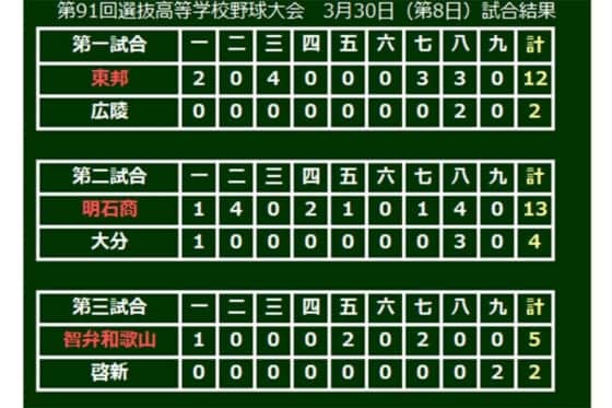 第三試合は智弁和歌山が勝利しベスト8が出揃う