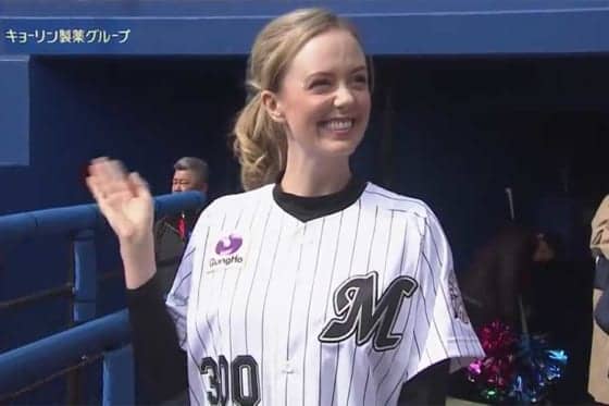 ロッテ、シャーロット・ケイト・フォックスさんが始球式 弾ける笑顔でファン魅了 | 野球