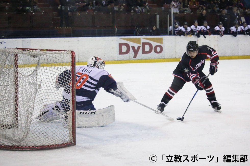昨年12月に行われたリーグ戦入替戦。1部Bに所属する立大は2部の昭和大と対戦。負ければ降格が決まる中で勝負はゲームウイニングショットへもつれ込む。1本目は決められてしまうが、2、3本目を止め、残留に貢献した。1人目に簡単にまかれてゴールを許すと、2人目以降は得意のポークチェックで受けに回らずあえて攻めた。守護神としてチームを勝たせた瞬間だった。