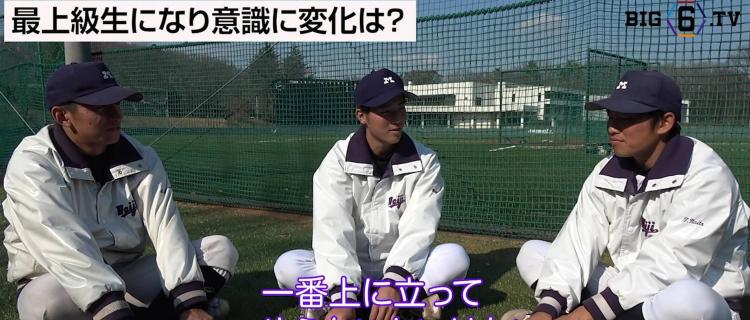 第3回は明大・主将の森下暢仁(④大分商)と副将・北本一樹(④二松學舍大附)、添田真海(④作新学院)の3人。ホームランを打った後のダイヤモンド一周について盛り上がったり、添田の首位打者宣言、森下新主将の意識の変化など見どころ満載です。ぜひ、ご覧ください!
