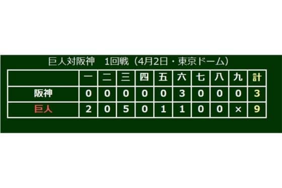 試合は巨人が9‐3で阪神を下す