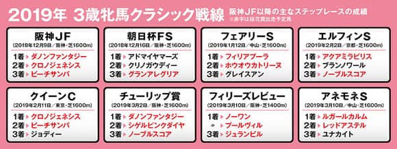 今年は、昨年末のGI阪神ジュベナイルフィリーズ(12月9日/阪神・芝1600m)を制して2歳女王に輝いたダノンファンタジー(牝3歳)が、前哨戦のGIIチューリップ賞(3月2日/阪神・芝1600m)も難なく勝利。人気のうえでは同馬が中心と見られている。