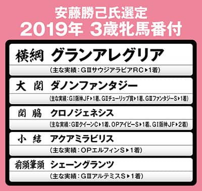 そこで、今年も競走馬の分析に長(た)けた元ジョッキーの安藤勝己氏に取材を敢行。今年の牝馬クラシックに挑む面々の実力について診断・分析をしてもらい、独自の視点による「3歳牝馬番付」を選定してもらった――。