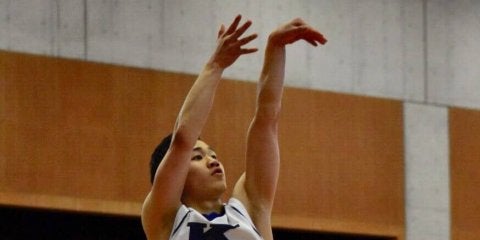 <写真・同点弾となる3点シュートを放った横川> 4月6日、同志社大学京田辺キャンパスデイヴィス記念会館にて、第40回関関…