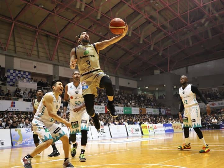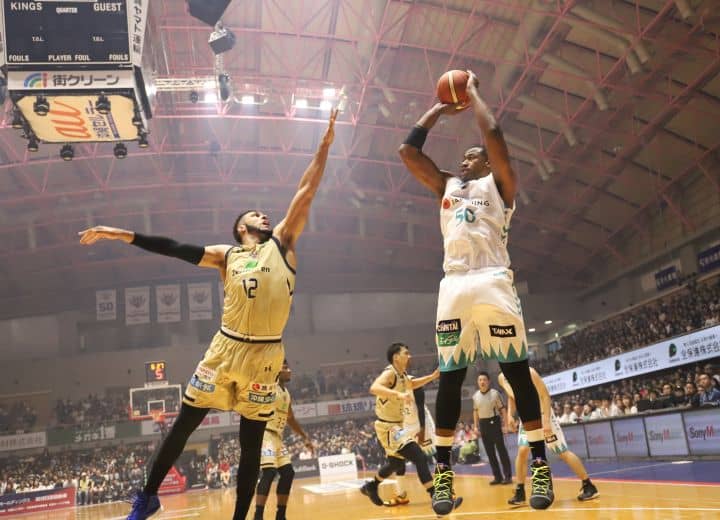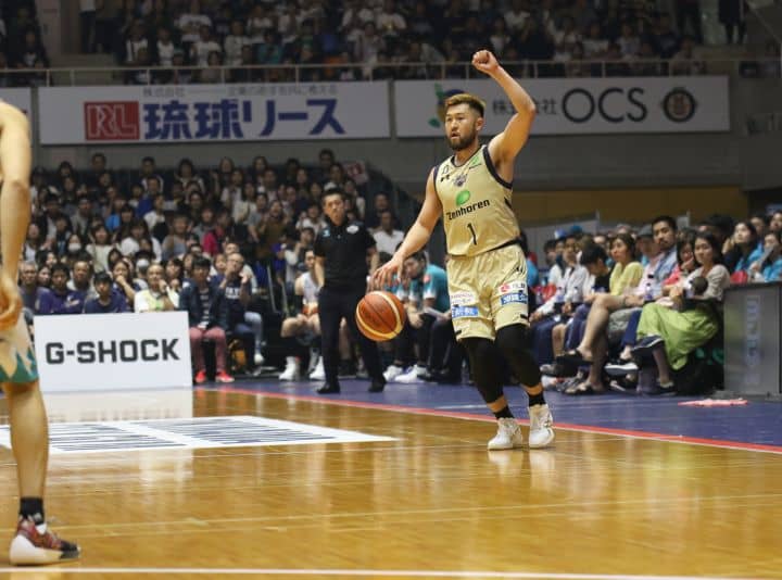 後半に入っても琉球が僅差でリードする展開は続いていく。第4クォーターの残り2分半、マブンガの得点で京都が逆転するも、琉球はすぐにケビン・ジョーンズのフリースローで再逆転。そして残り30秒、2点リードの場面で並里が体勢を崩しながらジャンプシュートを沈めて熱戦に終止符を打った。