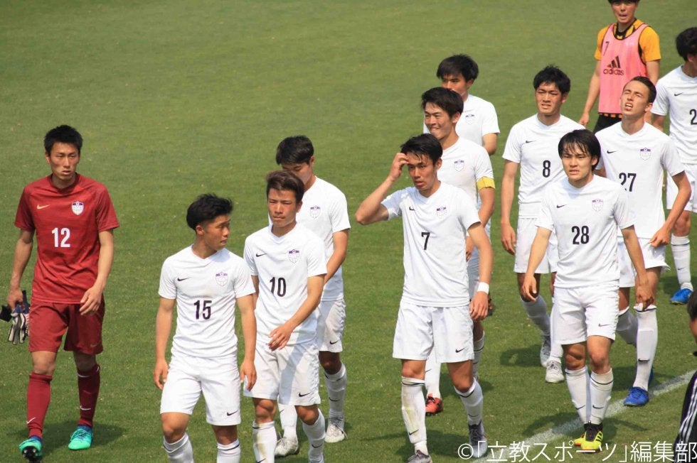 1点が遠かった。0−1のまま迎えた後半残り15分、前半をシュート1本に封じられていた攻撃陣が牙を剥き始める。77分、堀(異1=ジェフユナイテッド千葉U–18)のクロスのこぼれ球に反応した武智(済3=駒澤大高)が迷わずボレーシュートを放つ。81分には、奥谷(コ4=都立駒場)が左サイドからペナルティエリア内にカットインして右足を振り抜くも枠外へ。終了間際にも奥谷のコーナーキックに堀がヘディングで合わせたが、ボールは無情にもクロスバーを叩いた。後半だけ見れば、シュート数は相手の2本を大きく上回る7本。攻撃の形は出来ていただけに、悔しい敗戦となった。