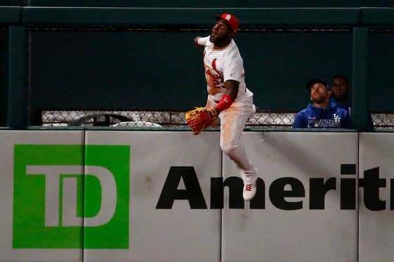 捕球を試みたカージナルスのマルセル・オズナ【写真:Getty Images】