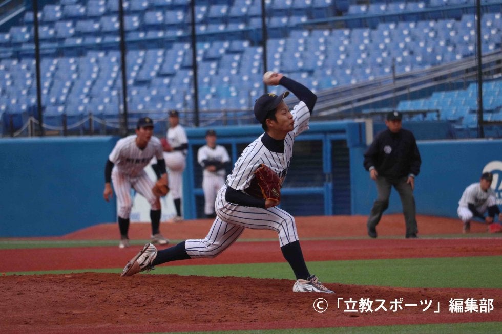 タテジマの守護神・中川(コ3=桐光学園)が“二刀流”に挑戦する!昨年まではクローザーとしてマウンドに上がり、要所を締める投球をしてきたサブマリン。1年時には全日本選手権優勝投手としてMVPにも選出された。そんな右腕は、今季から打者としてもチームに貢献することを誓う。オープン戦の対筑波大戦では、なんと一塁手として先発出場し第1打席で左中間への二塁打を放った。指揮官も「中川は、この冬はずっと二刀流を頑張ってきています。高校時代はもしかしたら打者としてドラフトにかかるかもしれなかったぐらい、(昔から)打撃が良いですね」と絶賛。今春の神宮球場で、“守護神・中川”だけでなく“打者・中川”としてもその名をとどろかせる。