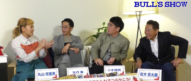 番組は毎月2回、21時ごろから配信されるスポーツバラエティーだ。MC/おぎやはぎとスペシャルゲストたちがお届けする生配信番組。「おぎやはぎのスポーツバラエティ BULL'S LIVE SHOW」記念すべき初回放送となる♯1のゲストは、女子W杯優勝メンバーの元なでしこ・丸山桂里奈さん、サッカー解説者の松木安太郎さん。