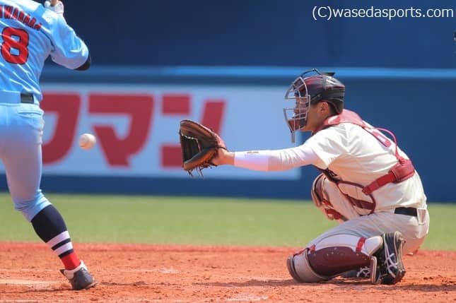 盗塁阻止とかは結構刺したい場面で刺せたりしているので、すごくいい状態なのですが、先ほども言ったようにパスボールが多いので、そこを練習でも詰めていって、絶対に後ろにはやらないということを目標にしてやっていきたいです。キャッチングはトヨタ(自動車)とのオープン戦(●2-4)で、早稲田の先輩の細山田さん(武史、平21スポ卒)から教わりました。その教わったことを練習でやっていて、前よりはすごく良くなっていると思うので、続けてやっていきたいです。