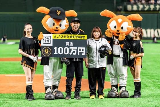 4月3日に巨人の開幕カード2日目の試合前イベントとして行われた「#ノリタケを打ち崩せ」では、DAZNアンバサダーの木梨憲武氏が一般募集の挑戦者を打ち取り、100万円を獲得。この賞金100万円の使い道として、夢ある子供たちに実際に球場でプロの試合を観戦してスポーツのを楽しさを味わってほしいとの想いから、東京ドーム親子ペア観戦チケット、通称「きなしーと」のプレゼントが実現した。