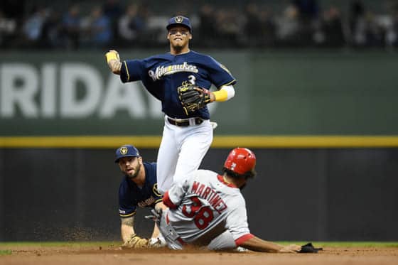 ブルワーズのマイク・ムスタカス内野手とオーランド・アルシア内野手が、16日(日本時間17日)の本拠地カージナルス戦で華麗なダブルプレーを披露した。MLB公式サイトはこのプレーを動画で紹介している。