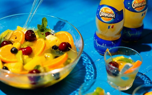 オランジーナを使ったアレンジスタイルとして、フルーツをたっぷり加えた3種類の「フレンチ・ポンチ」レシピを紹介。オランジーナ、ハニーレモンジーナ、ブラッドオランジーナをそれぞれ使用したおすすめレシピを見ることができる。