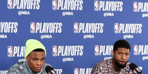 33得点5リバウンド11アシストで勝利に貢献したウェストブルックと共に試合後の会見に出席したポール・ジョージは、相棒を「有言実行の男」と称賛した。そのウェストブルックは、吟味された質問にしか答えず、多くを語らなかったが、29本中15本の3ポイントシュートを決めたチームについて「チームのみんなは、シーズンを通じてショットを決めているからね。第1、2戦の後にも言った通り、これからもチームメートを信頼して、正しいプレーを決める。オープンな選手がいたら、正しい判断をする。これからもチームメートを信頼し続けるだけさ」と、答えた。