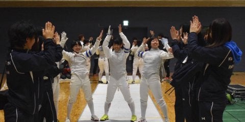<写真・試合後、喜ぶ選手たち> 4月20日、京都府大山崎町体育館にて第69回フルーレリーグ戦兼フルーレ新人戦が行わ…