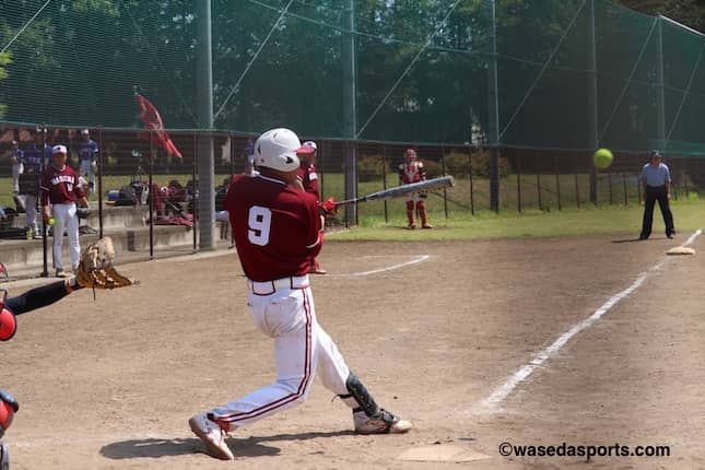 早大先発の山内は、前の試合で中央大学相手に完封勝利を記録。勢いそのままに先発のマウンドに上がったが、初回から四死球が絡んで3失点を喫してしまう。先制を許し、流れは大きく国士舘大側に傾いたかに見えたが、三番川上卓也副将(スポ3=岡山・新見)が中堅に特大の2ランを放ち、流れを引き戻す。続く2回には澤優輝(人2=東京・国学院久我山)の中前適時打で追いつく。さらに1死一、二塁から1番吉原陸(スポ3=福島・安積)が右中間へ大きな飛球を打ち上げる。センターフライになるも、中堅手と右翼手が交錯する間に二塁走者が一気に生還し、逆転に成功した。