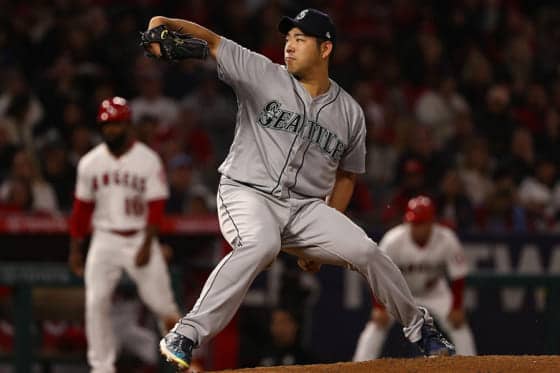 敵地エンゼルス戦で先発登板したマリナーズ・菊池雄星【写真:Getty Images】