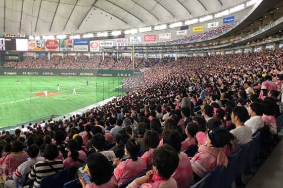 ピンク色のユニホームを着用した女性ファンで溢れた東京ドーム【写真:荒川祐史】