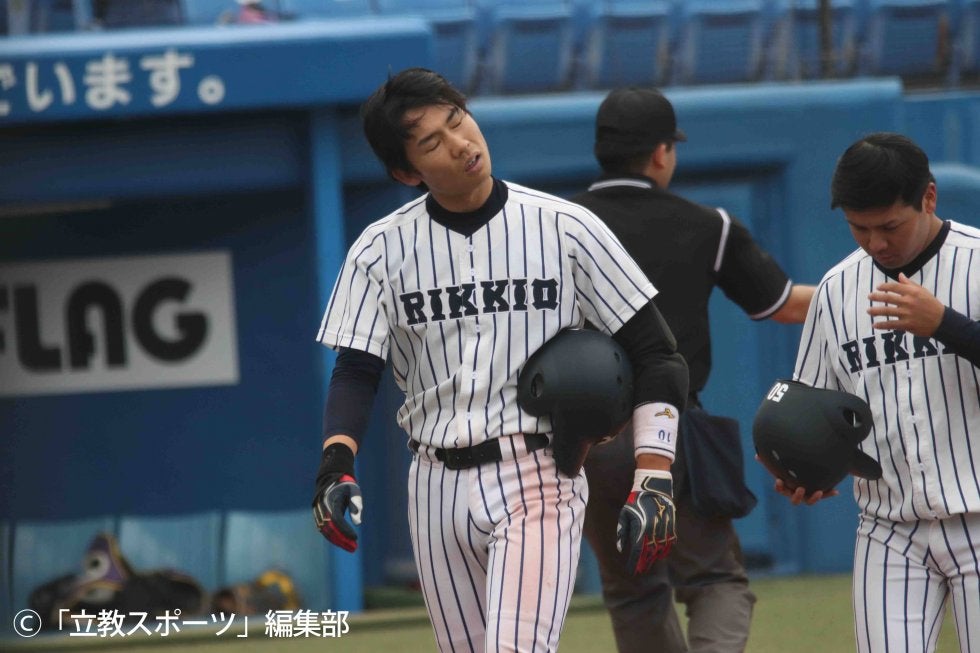 昨日の敗戦を踏まえ打線を大幅に変えた立大。トップバッターに宮﨑(コ1=大阪桐蔭)、3番に本塁打を放った山田(コ1=大阪桐蔭)、4番には今春不動のホットコーナーの男・柴田(社1=札幌第一)を置き、1年生中心の布陣となった。しかしドラフト候補右腕の前に快音は響かず。7回まで1安打に抑えられてしまう。8回には中嶋(コ3=佼成学園)の二塁打から金川(社2=立教新座)が12球の粘りを見せた末、進塁打。続く宮(コ3=市立船橋)の内野ゴロの間になんとか1点を奪う。しかし反撃はここまで。9回には宮﨑、山田の安打でチャンスを作るもあとが続かなかった。