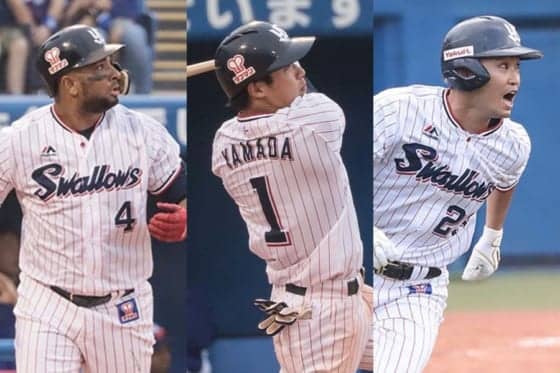 ヤクルト・バレンティン、山田哲、青木(左から)【写真:荒川祐史】