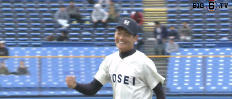 2死1塁2塁から法大5番・相馬(④健大高崎)がライト線をやぶる先制のタイムリー2ベースを放ち先制すると、続く安本(④静岡)がレフトスタンドへの3ランホームランで法大が一気に4点先制する。