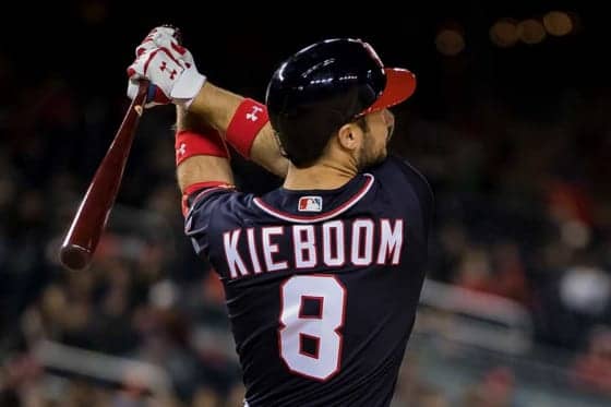 ナショナルズのプロスペクト(若手有望株)、カーター・キーブーム内野手が26日(日本時間27日)の本拠地パドレス戦でメジャーデビューし、いきなり初本塁打を放った。貴重な同点弾は7回の第3席で飛び出したが、中継していた地元テレビ局はその瞬間、たまたまスタンドの両親の姿を“ワイプ”で捉えており、大喜びする姿が生中継される形に。球団公式ツイッターがこの映像を公開すると、ファンからは「素晴らしい家族」と喜びの声が上がった。