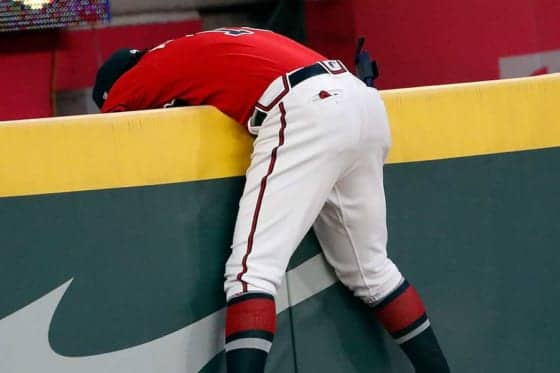 ブレーブス1点リードで迎えた4回だった。ロッキーズのストーリーがバットを振り抜くと、打球はレフトに高々と上がった。アクーニャはゆっくりと打球を追うと、タイミングを合わせてジャンプ。驚異的な跳躍力でフェンスに手をかけて、グラブにボールを収めた。