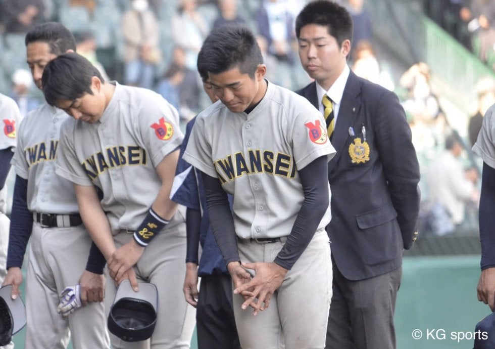 <写真・試合後、深々と頭を下げる中内主将> 4月27日、阪神甲子園球場にて2019年度関西学生野球連盟春季リーグ戦…