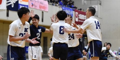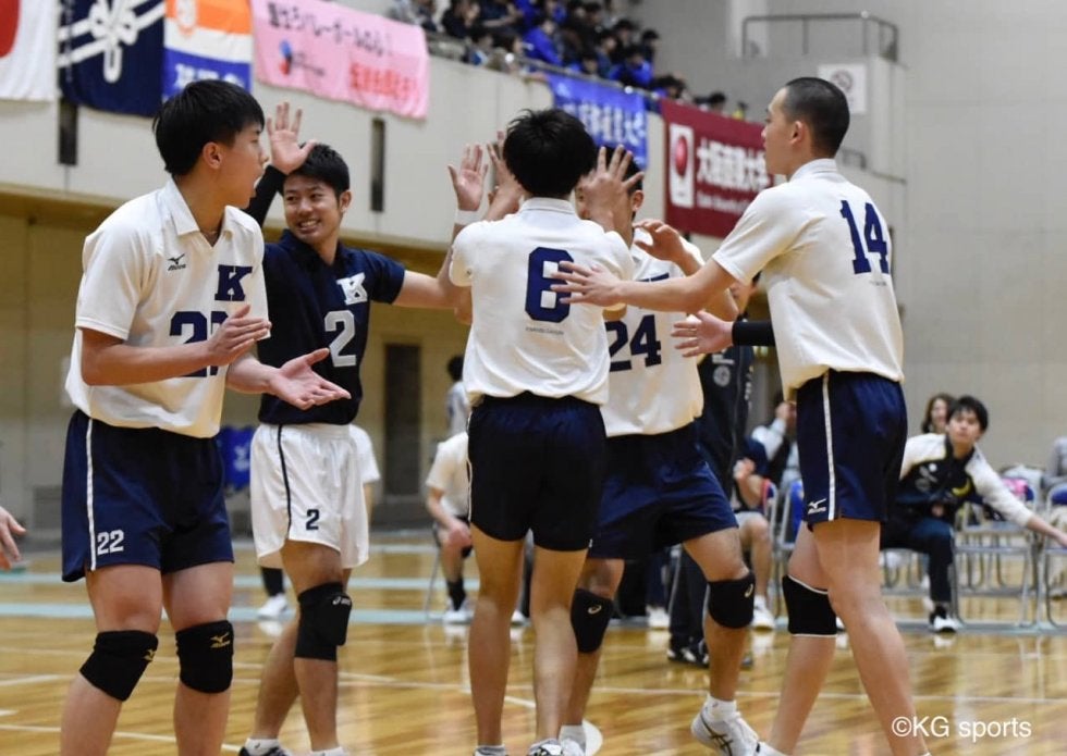 <写真・得点を決め、笑顔を見せる選手たち> 4月28日、大阪商業大学にて2019年度関西大学バレーボール連盟春季リーグ第…