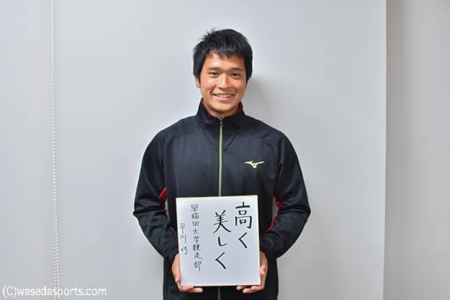 父が早稲田というのもあって興味があったこともあるし、早稲田の卒業生でもある同じ棒高跳の笹瀬弘樹選手(平24スポ卒=現静岡陸協)がいて、同じ静岡の合宿で一緒にしたり、アドバイスもらったりして、早稲田っていいなというふうに思っていました。