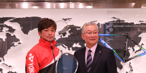 船水颯人(平31スポ卒)が日本初のプロソフトテニスプレイヤーとして、用具使用契約を締結したYONEXと、YONEX T…