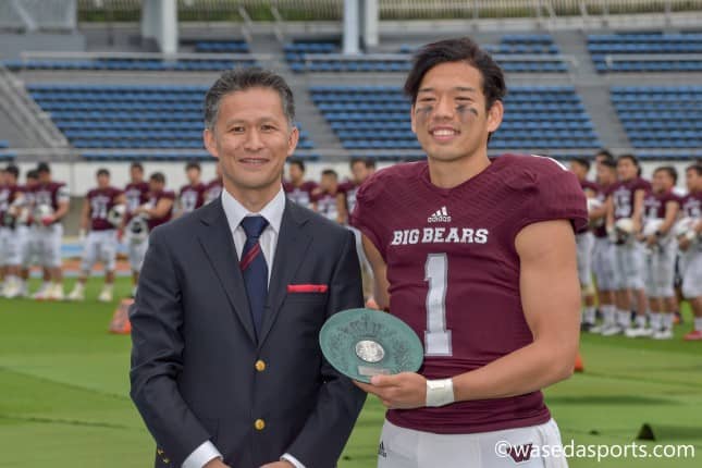 反省でいえば、キックオフでアウトオブバウンズになってしまった場面は流れを作るという意味では悪い流れにしてしまったと思っています。逆にオンサイドというか、自分たちがボールを確保出来た場面ではFG慶応側のミスもあったりしたんですけど、自分たちに有利なボールをそのままTDまで持っていけたので、いい流れが作れたかなと思います。でも、まだ自分が目標にしてるところには全然辿り着いてないので、これからも頑張っていかないといけないと思いました。