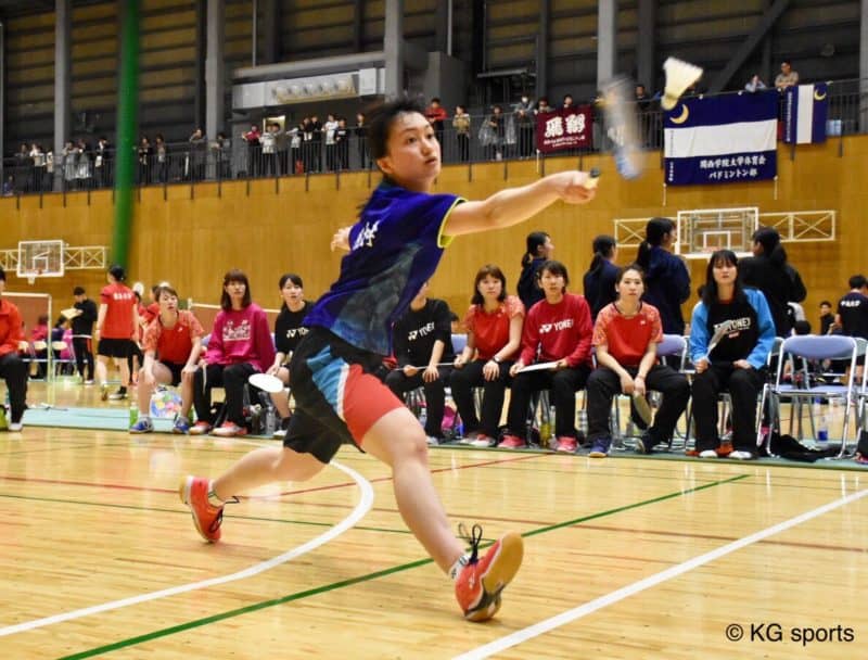 <写真・第2シングルスで勝利した酒井>5月1日、立命館大学いばらきキャンパス体育館にて平成31年度関西学生バドミントン春…
