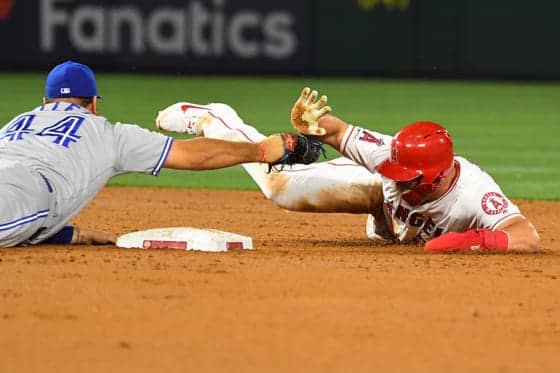 懸命に戻ったが二塁でアウトとなったエンゼルスのマイク・トラウト【写真:Getty Images】