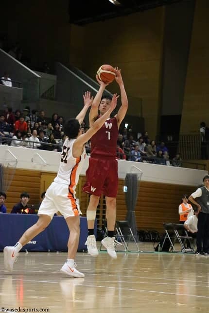 | G#14 柳川幹也(スポ3=京都・洛南) C#41 小室悠太郎(社3=石川・北陸学院) F#7 宮本一樹(スポ2=神奈川・桐光学園) G#1 神田誠仁(社1=浜松開誠館) G # 12 土家大輝(スポ1=福岡大大濠) | ◇主なスコアリーダー◇得点 宮本一樹:24得点 リバウンド 宮本一樹:8リバウンド アシスト 土家大輝:3アシスト | |||||
