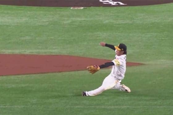 島内の中前へと抜けようかという打球を好捕、ボール握れぬままスローソフトバンク – 楽天(3日・ヤフオクドーム…