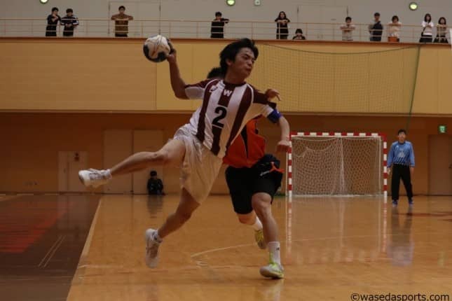 競った展開から、早大が内容の良い勝ち点2を獲得した。関東学生春季リーグは早くも第6節。前節時点で7位の早大は、5位の法大と相対した。序盤こそシュートが決まらなかったが、アグレッシブな動きで徐々に持ち直し、1点リードで折り返す。後半も流れはどっちつかずであったが、辛抱強く機会を待ち、残り4分で初めて3点のリードを奪うことに成功した。終盤で一歩抜け出した早大は、その後敵陣の猛攻から逃げ切り31-29で粘り勝ち。第1節の日大以来、久しぶりの白星となった。
