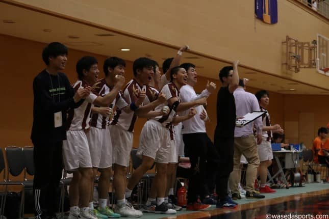 早大の得点にベンチは大いに盛り上がった