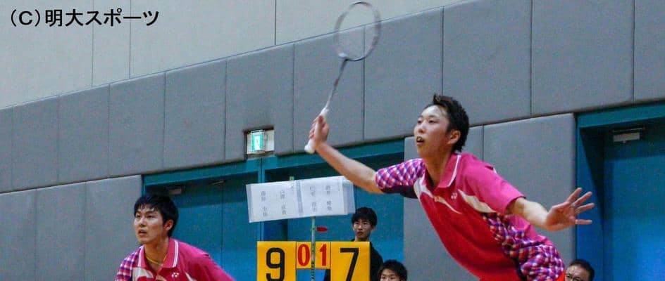 春季リーグ最終戦、相手は昨年度4位の法大。第1、2シングルスを接戦で落としたものの、第1ダブルスの酒井健登主将(政経4…