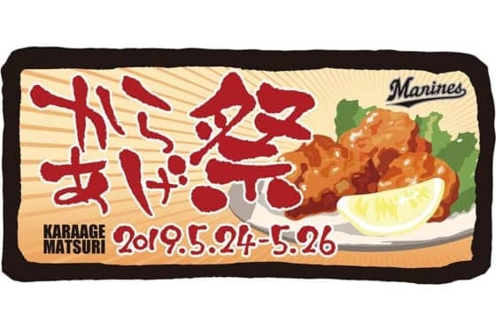 ケータリングカーでの出展は閻魔から揚げ、田中屋、和食処くぼ多、鶏紅葉亭、黒からあげ。場所はZOZOマリンスタジアム外周飲食エリア、販売開始時間は5月24日15時15分~20時15分、5月25日10時00分~17時00分、5月26日10時00分~17時00分となっている。