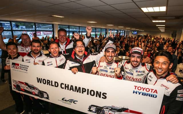 チャンピオン獲得決定を喜ぶTOYOTA GAZOO Racingの面々。《写真提供 TOYOTA》