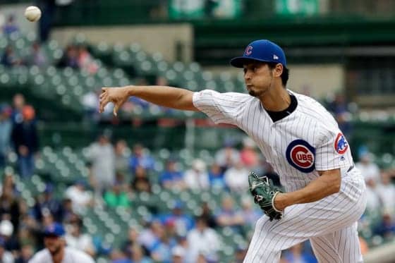 マーリンズ戦に先発したカブス・ダルビッシュ有【写真:AP】