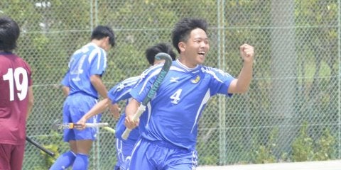 <写真・得点を挙げた尾島> 5月12日、甲南大学ホッケーグラウンドにて2019年度関西学生ホッケー春季リーグ予選第3戦…