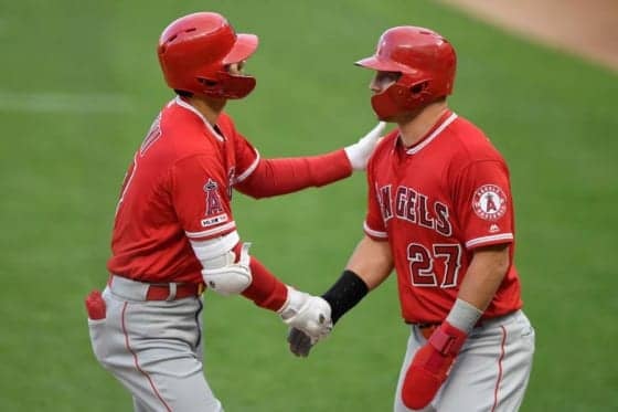 3回の第2打席で放った特大の今季初本塁打で生還したトラウト