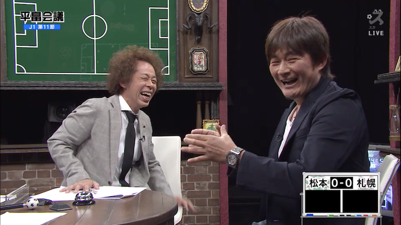 5月12日放送の『平畠会議』J1第11節では、司会の平畠啓史とともにゲストに元日本代表の安永聡太郎と岩本輝雄、そして昨シーズンに讃岐まで讃岐の監督を務めていた北野誠を招へいして、週末のJ1について熱い議論が行われた。