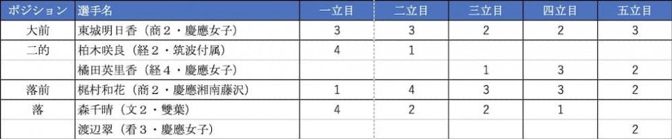 後半での巻き返しが期待される慶大は三立目、柏木に替えて橘田英里香(経4・慶應女子)を投入する。交代直後の大事な初矢を見事的中させるも他が続くことが出来ず。梶村が一人8射6中と奮闘するが、四立目を終えた時点で39中対46中と大きく差を広げられてしまう。