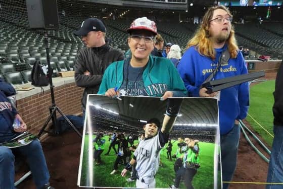 この日の試合前には、マリナーズの打撃練習終了後、一塁側ダグアウト前でイチロー氏と笑顔で再会。エイミーさんは、現役最終戦となった3月21日の東京ドームでのアスレチックス戦後、イチロー氏がフィールドを一周した際の写真を手に持っていた。外野スタンドから手を振るエイミーさんに気付いたイチロー氏が、左手をあげて応えているところを捉えており、この記念の1枚にサインを添えてもらったのだ。