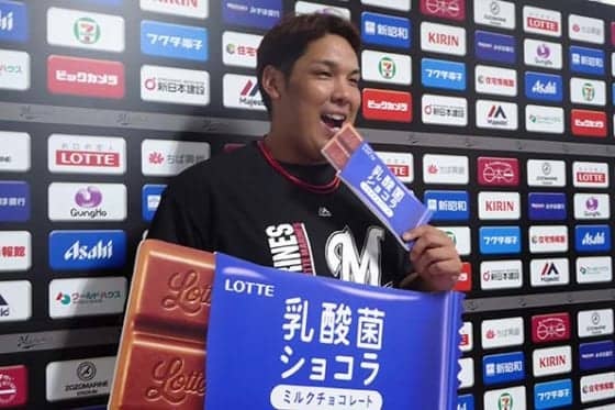 この日、チームを代表して贈呈式に参加した井上晴哉内野手は、昨年6月23日に行われた「乳酸菌ショコラデー」に西武・今井から逆転満塁ホームランを放つ活躍を見せた。エールを送られた井上は「ホームランを打つと乳酸菌ショコラがもらえますし、逆にもらったパワーでまたホームランを打てるようにしたいです。勝ちにもしっかりこだわって、明日頑張ります」と誓った。(佐藤直子 / Naoko Sato)
